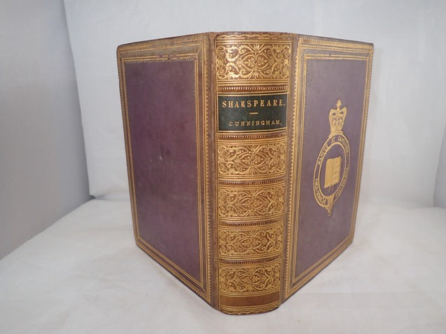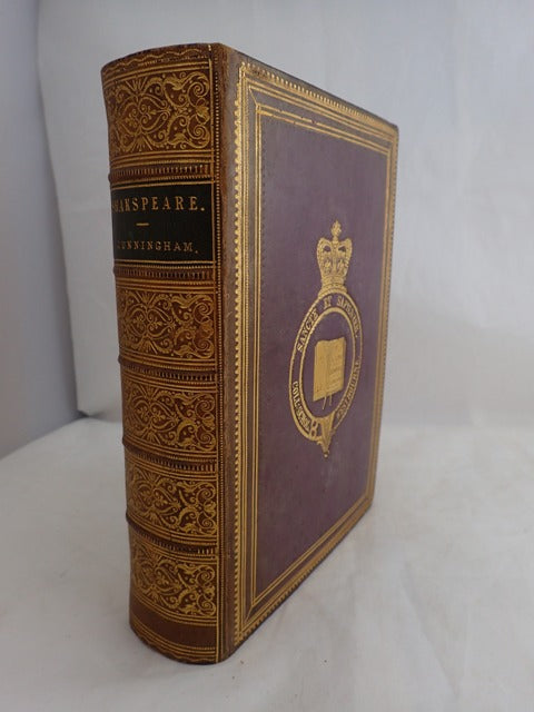 Undated, c1865. Brown leather boards with gilt lettering to spine. Concave page edges. All edges gilt. 5 raised bands. Westborne Collegiate School emblem to front board in gilt. Boards are generally in very good order. Slight bumping to corners. Slight edgewear. Spine is good with just a little wear to the ends. B/w frontispiece of William Shakespeare and 18 further plates; vignette of King John to title page; various other illustrations. Waterstain to bottom corner with extends throughout. Occasional mild foxing. 924 pp. Presentation bookplate to fep. Additional photos are available upon request. When securely packed this item will weigh in the region of 768g. (YBP Ref: 028554:1-Q11)