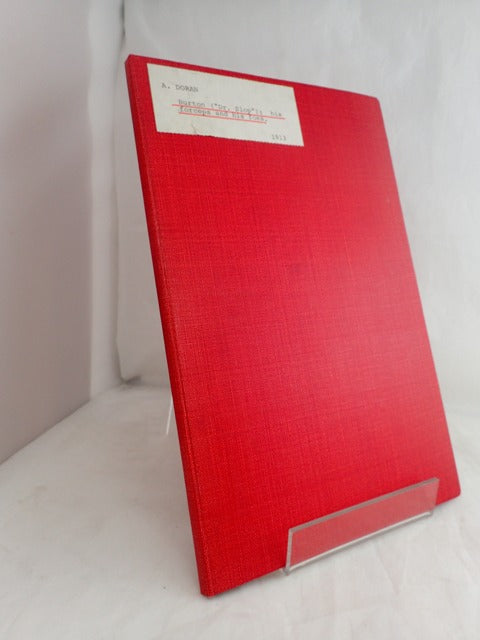 Red cloth boards with white label with typed lettering to front. Boards are generally in good order, just a little shelfwear. Slight bumping to corners. Spine is intact albeit with some mild bumping to the ends. The original pamphlet covers have been bound in. What would have been the front cover has a slip of white paper glued to the front. Also bound in is a slip giving the authors kind regards. Occasional slight fox. 46 pp. Additional photos are available upon request. When securely packed this item will weigh in the region of 327g. (YBP Ref: 028780:1-R1)