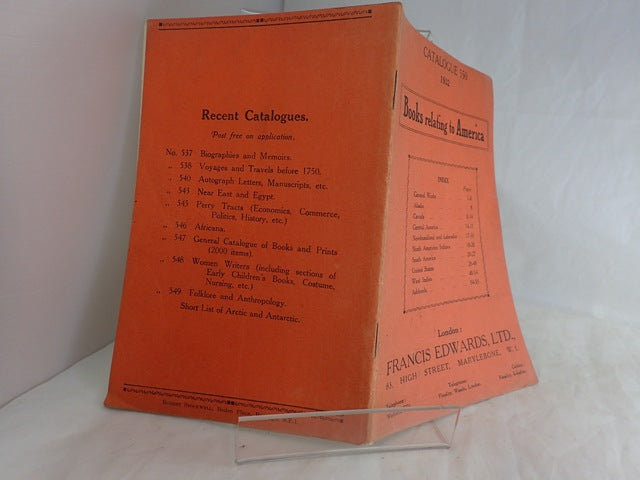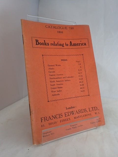 Catalogue 550: Catalogue of Books Relating to America: Alaska, Canada, United States, Central America, South America and West Indies