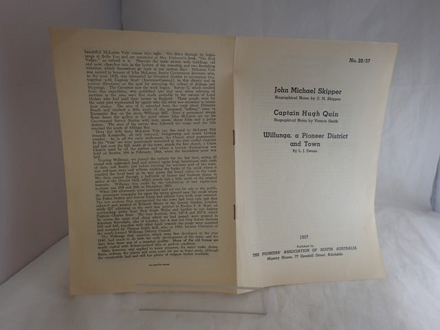 Pioneers' Pamphlet 28/57: John Michael Skipper, Captain Hugh Quin, Willunga - a Pioneer District and Town