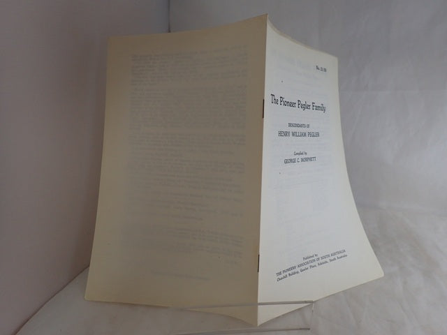 Pioneers' Pamphlet 21/53: The Pioneer Pegler Family - Descendants of Henry William Pegler