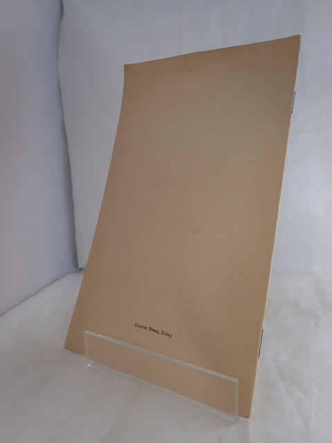 Cream textured card covers with black lettering to front. Covers are generally in good order. Slight bumping to corners, some subsequent curling. Stapled spine is holding well. Textblock is in good condition, clean and tight. 16 pp. Additional photos are available upon request. When securely packed this item will weigh in the region of 100g. (YBP Ref: 028942:1-R3)