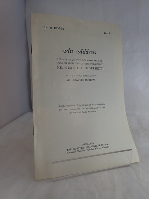 Pioneers' Pamphlet Series 1950/51 No 6: An Address Delivered on the Occasion of the Golden Wedding of the President Mr George C Morphett