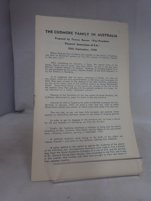 Pioneers' Pamphlet 20th September 1945: The Cudmore Family in Australia