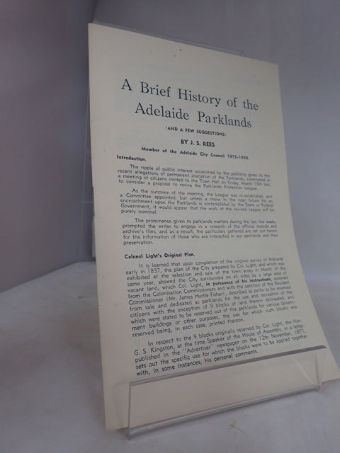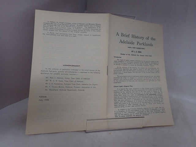 Pioneers' Pamphlet July 1948: A Brief History of the Adelaide Parklands