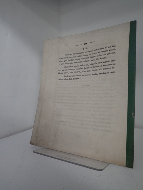 Small stiched pamphlet with a green spine covering. Covers are a little grubby with some pencil annotation. Bumping to corners, some subsequent curling. Small damage to spine covering over the stitches. Internally, in good order. We have a large number of similar items. Contact us for details. 20 pp. Additional photos are available upon request. Text in Latin. When securely packed this item will weigh in the region of 71g. (YBP Ref: 030963:7a)