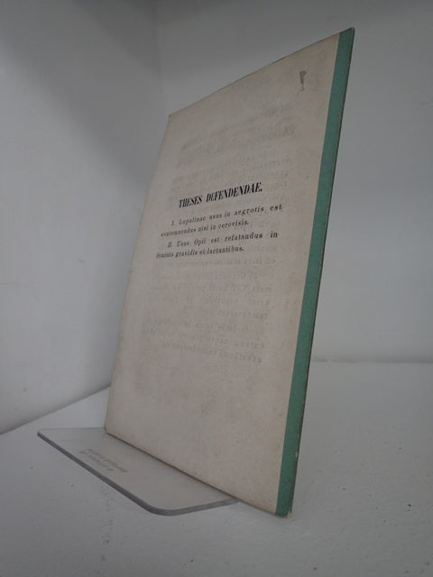 Small stiched pamphlet with gree spine covering. Covers are grubby. Bumping to corners, some subsequent curling. Slight bumping to the bottom of the spine. Internally browned but generally clean. We have a large number of similar items. Contact us for details. 35 pp. Additional photos are available upon request. Text in Latin. When securely packed this item will weigh in the region of 85g. (YBP Ref: 030968:7a)