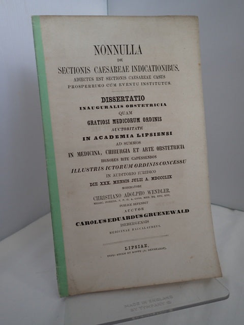 Nonnulla de Sectionis Caesareae Indicationibus. Adiectus est Sectionis Caesareae Casus Prosperrimo Cum Eventu Institutus: Dissertatio Inauguralis Obstetricia quam Gratiosi Medicorum Ordinis Auctoritate in Academia Lipsiensi