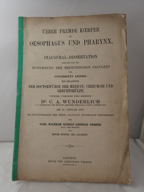 Ueber Fremde Koerper In Oesophagus Und Pharynx : Inaugural - Dissertation Verfasst Und Mit Zustimmung Der Medicinischen Facult�t Der Universit�t Leipzig Zur Erlangung Der Doctorw�rde Der Medicin , Chirurgie Und Geburtsh�lfe
