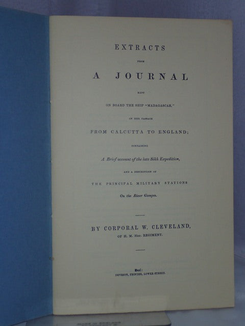Extracts from a Journal Kept on Board the Ship Madagascar on her Passage from Calcutta to England Containing a Brief Account of the Late Sikh Expedition and a Description of the Principal Military Stations on the River Ganges