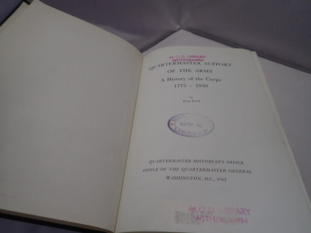 Quartermaster Support of the Army: A History of the Corps 1775-1939