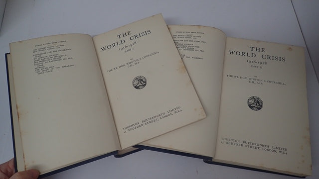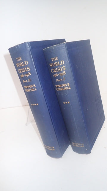 Both volumes have blue cloth boards with gilt lettering to spine and blindstamped lettering to front. Boards are generally in good order, just a little marked. Slight bumping to corners. Spine a little discoloured with a little bumping to the ends. Foxing to the page edges. Part I: April 1927, 4th Impression. 292 pp. Age discolouration to endpapers. Previous owner's bookplate to FEP. Part II: April 1927, 4th Impression. Pagination: ix, 293-589 pp. Age discolouration to endpapers. Previous owner's bookplate to FEP. These form volumes III and IV in the World Crisis Series. Additional photos are available upon request. When securely packed this item will weigh in the region of 1613g. (YBP Ref: 033821:13c)