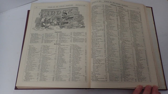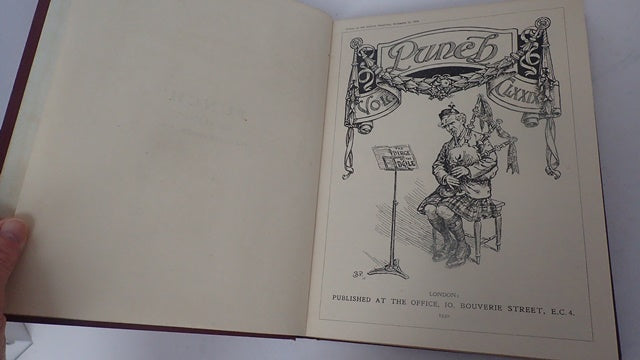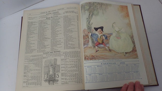 Red decorated cloth boards with gilt lettering to spine. Gilt emblem to front. Boards are generally in good order, just a little shelfwear. Slight bumping to corners. Spine is faded with bumping to ends. Age discolouration to endpages. Textblock is in good condition, clean and tight. See photographs for content description. Includes Punch's Almanack for 1931. Additional photos are available upon request. When securely packed this item will weigh in the region of 2178g. (YBP Ref: 034016:13i)