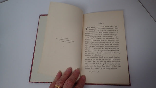 Scarce, 1st edition, rebound with page edges trimmed. Red cloth spine and marbled paper covered boards. Mild foxing internally. 34 pp. Additional photos are available upon request. When securely packed this item will weigh in the region of 233g. (YBP Ref: 034949:15b)