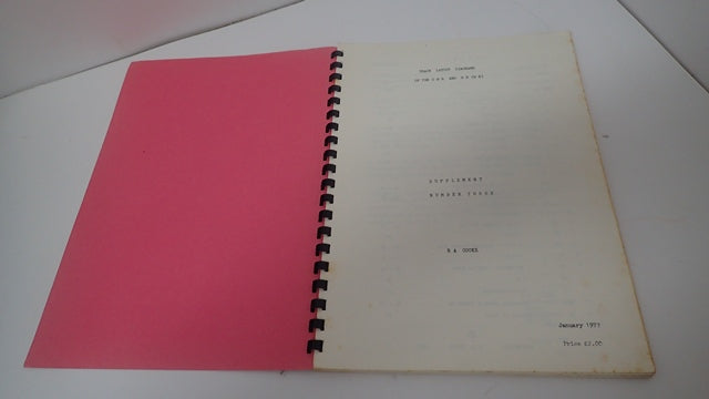 Pink card boards with black lettering to front. Covers are generally in good order, just a little feint fox and evidence of a sticker. Slight bumping to corners, some subsequent curling. Comb bound spine is intact and holding. Mild foxing to the page edges. Some mild fox internally. Additional photos are available upon request. When securely packed this item will weigh in the region of 337g. (YBP Ref: 035003:15c)
